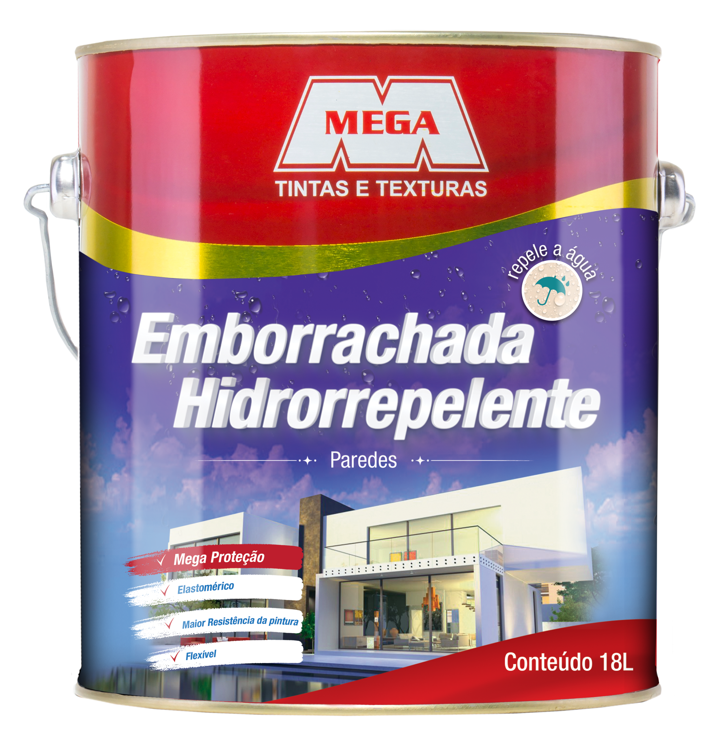 Tinta Emborrachada Mega 3,6L Branco é um produto para quem deseja proteger as paredes externas de casas, prédios e muros, faça sol ou faça chuva. Forma uma película película flexível emborrachada, que previne fissuras, impermeabilizando a parede, além de evitar formação de algas e fungos, deixando a parede bonita por mais tempo. É especialmente indicada para pintura de paredes e muros externos. Uma lata de 18L rende até 200m² por demão.